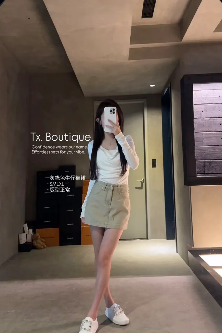 灰綠色牛仔褲裙
