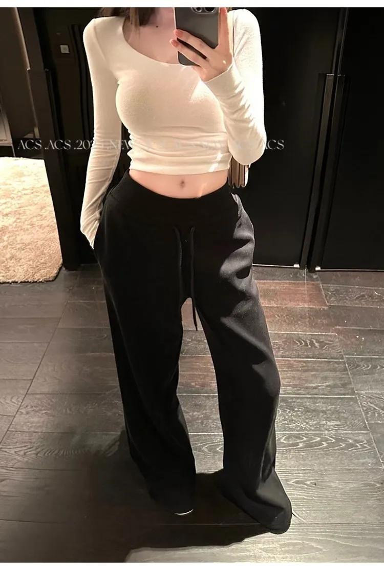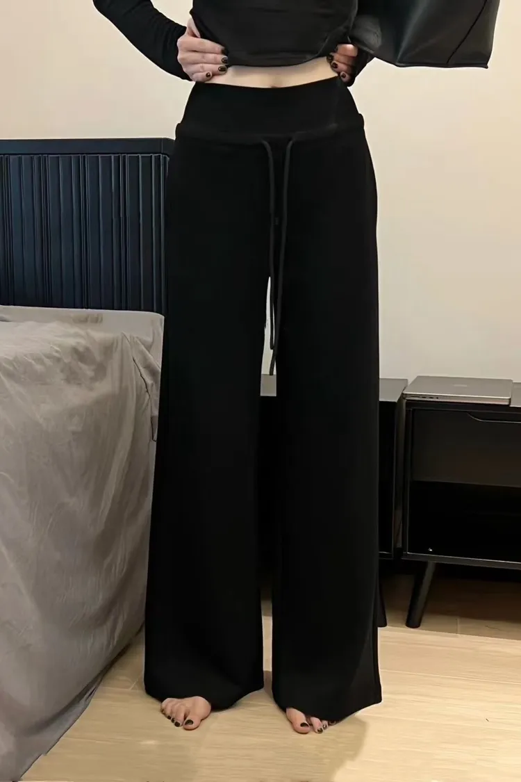 超舒服!秋款厚磅寬腰封空氣棉感闊腿褲
