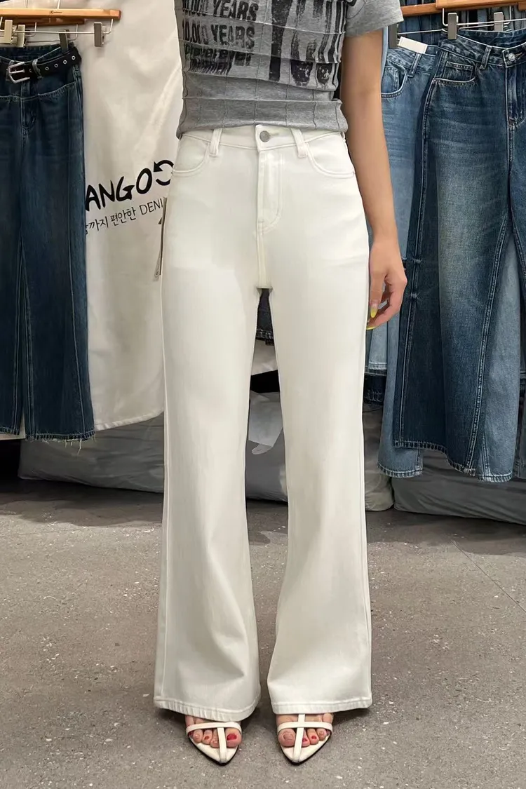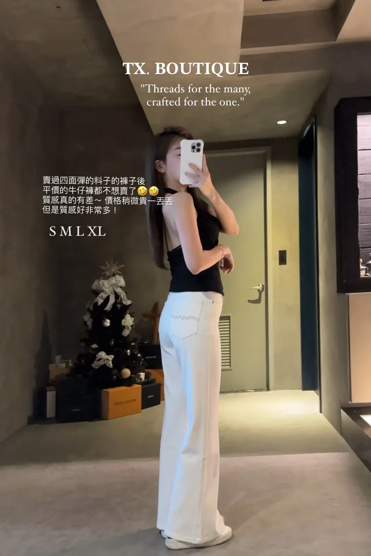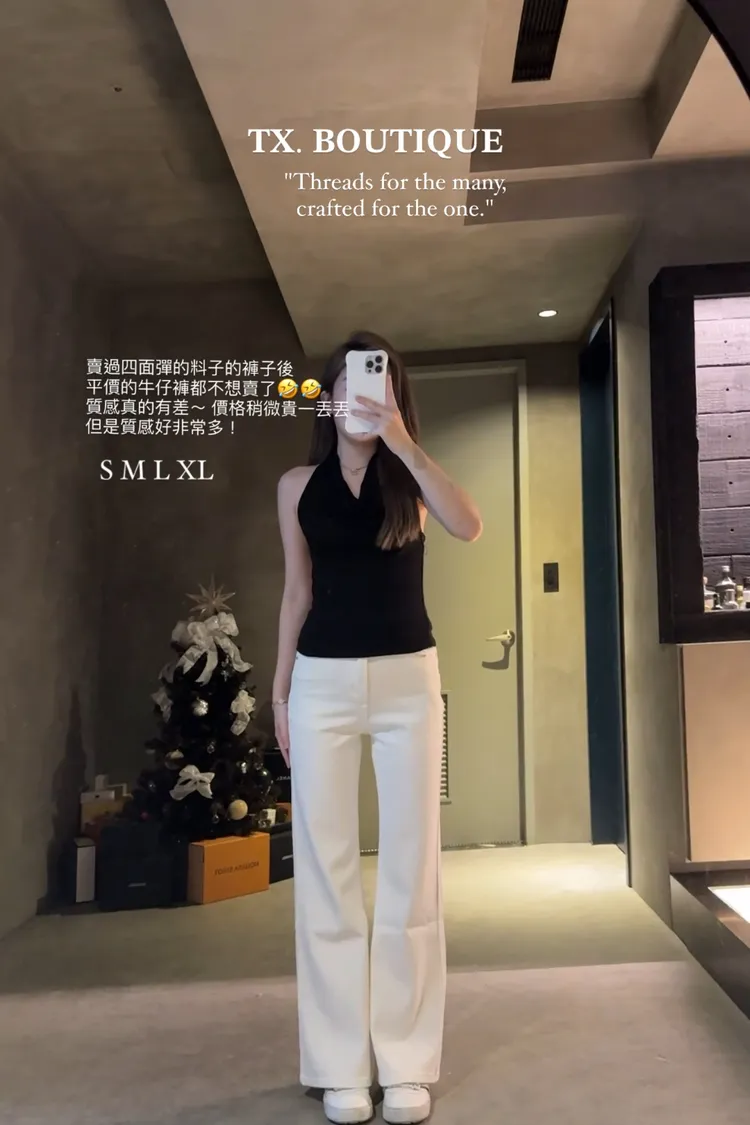 四面彈白色直筒褲