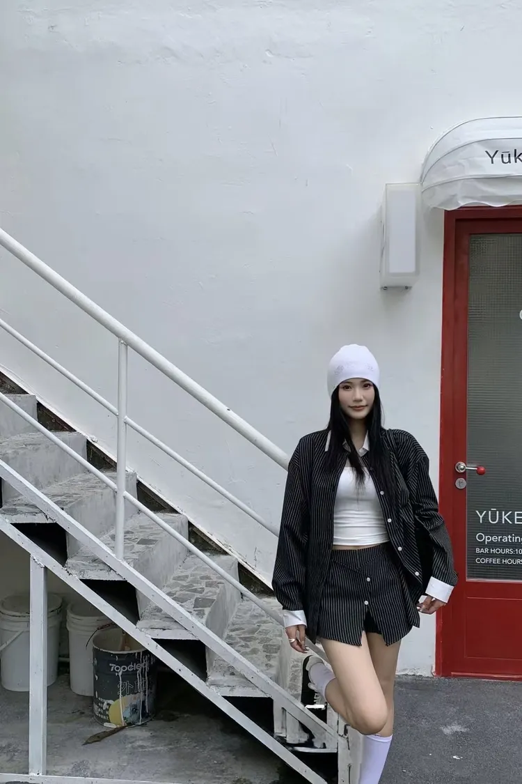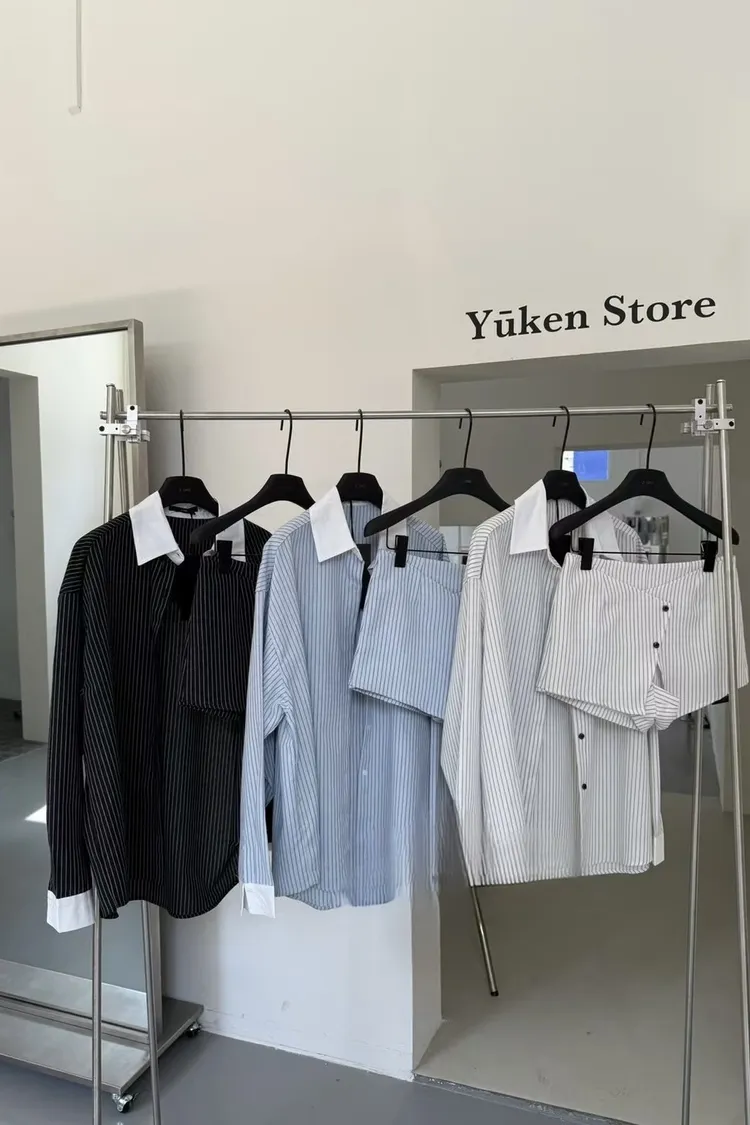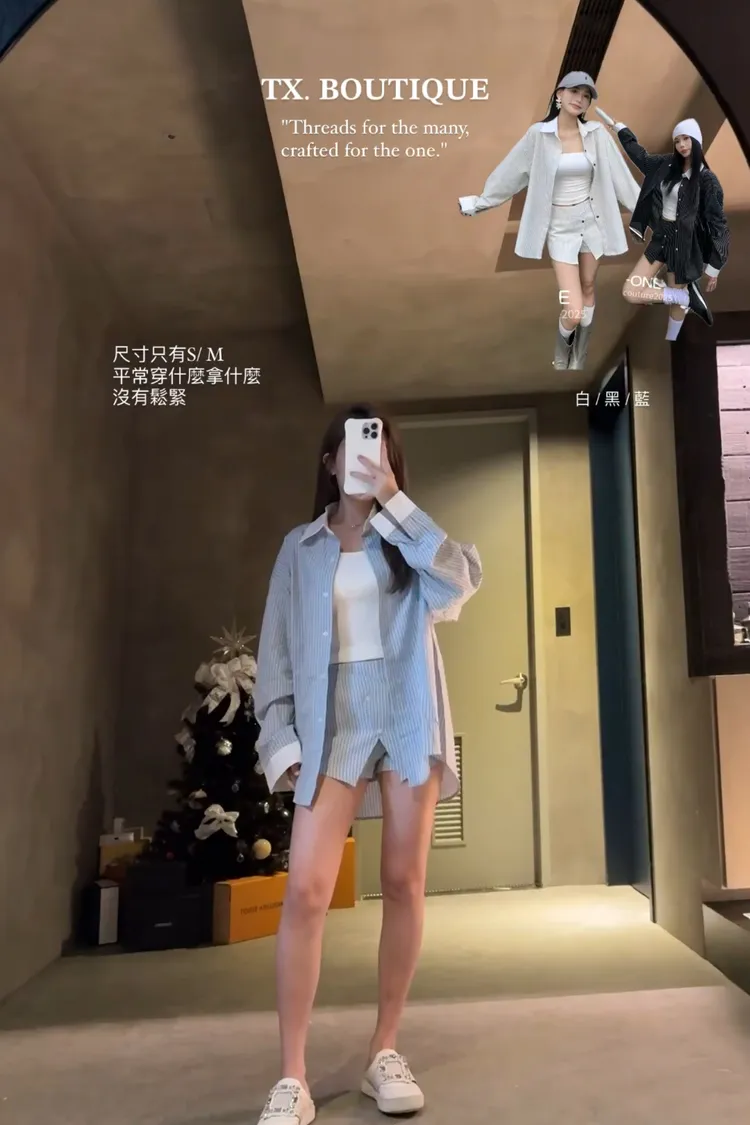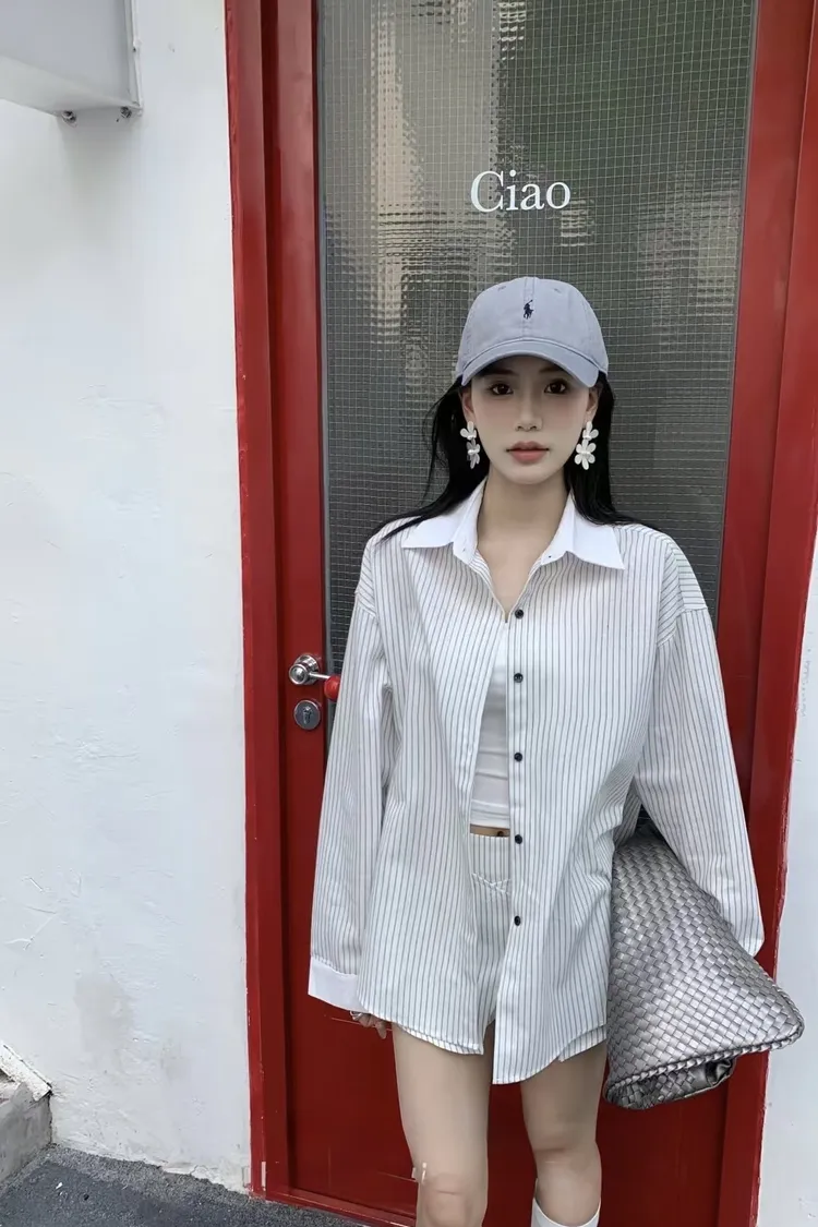 拼接條紋襯衫休閒短褲裙套