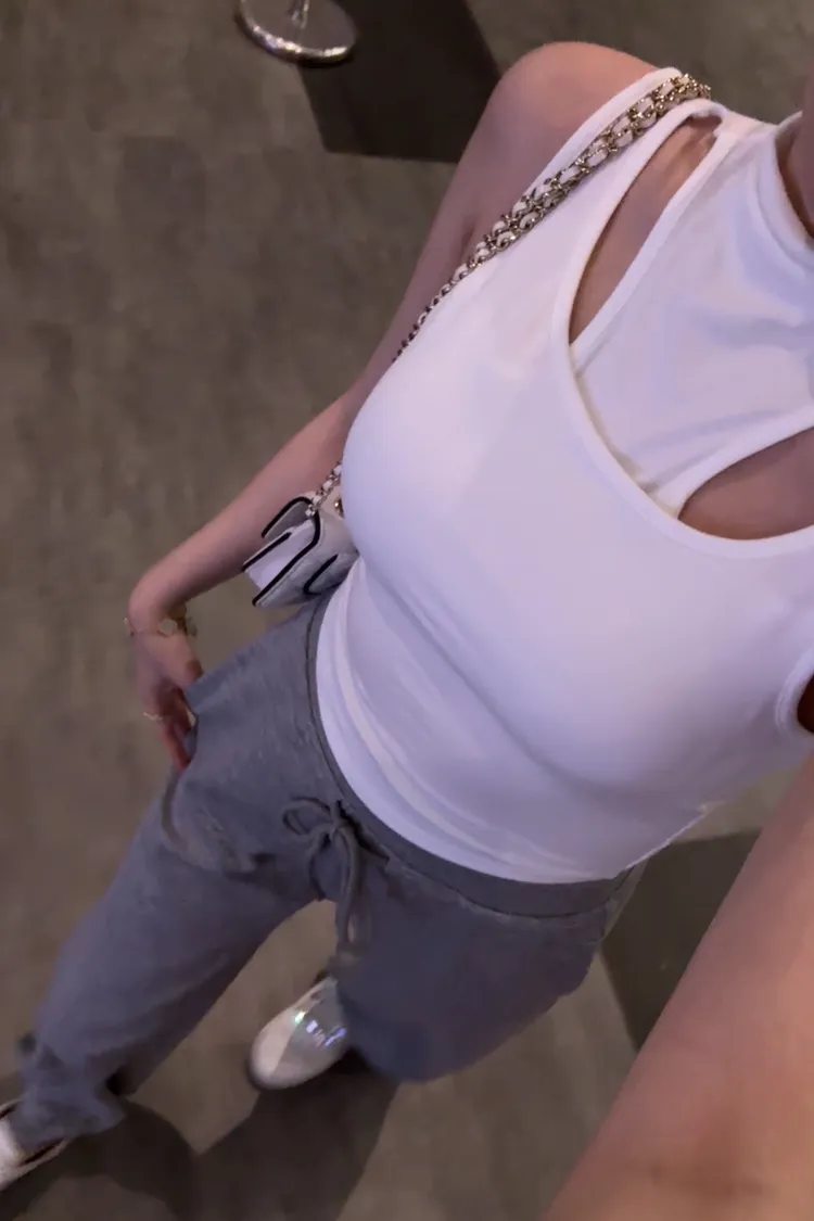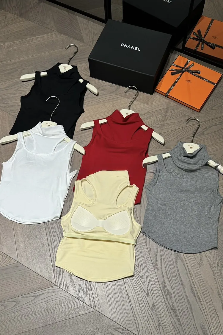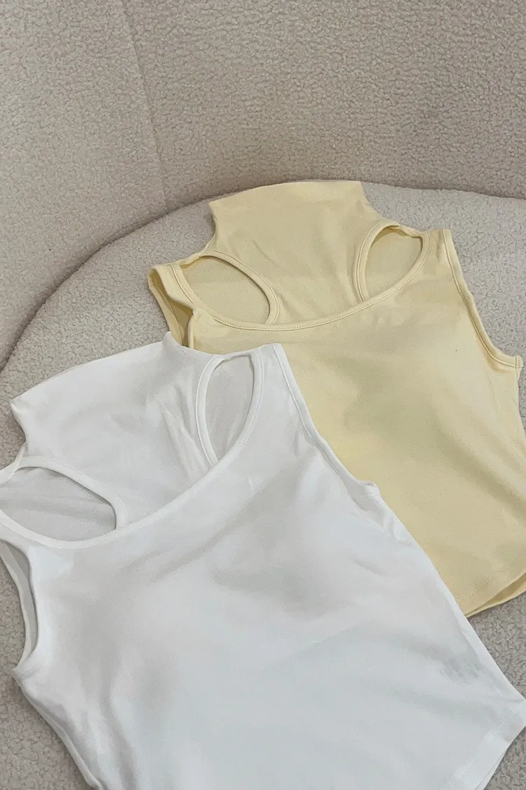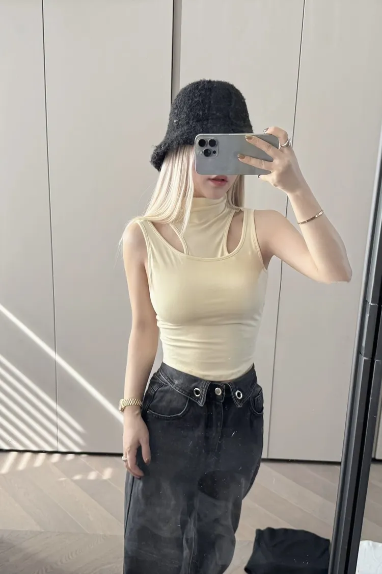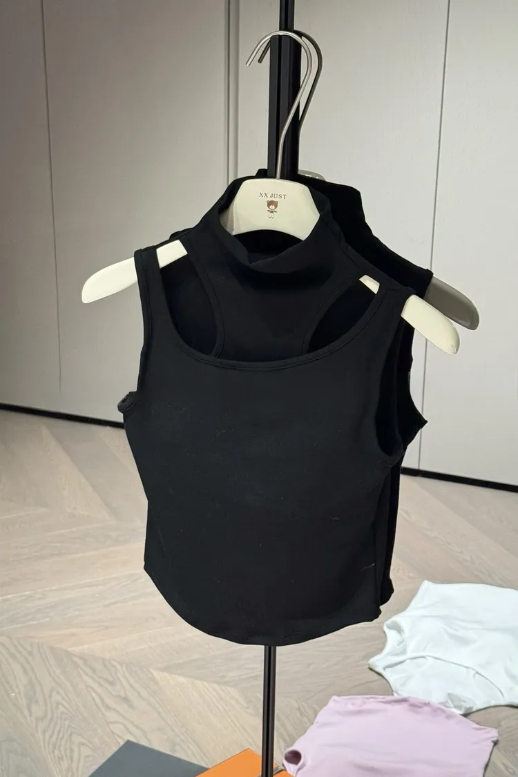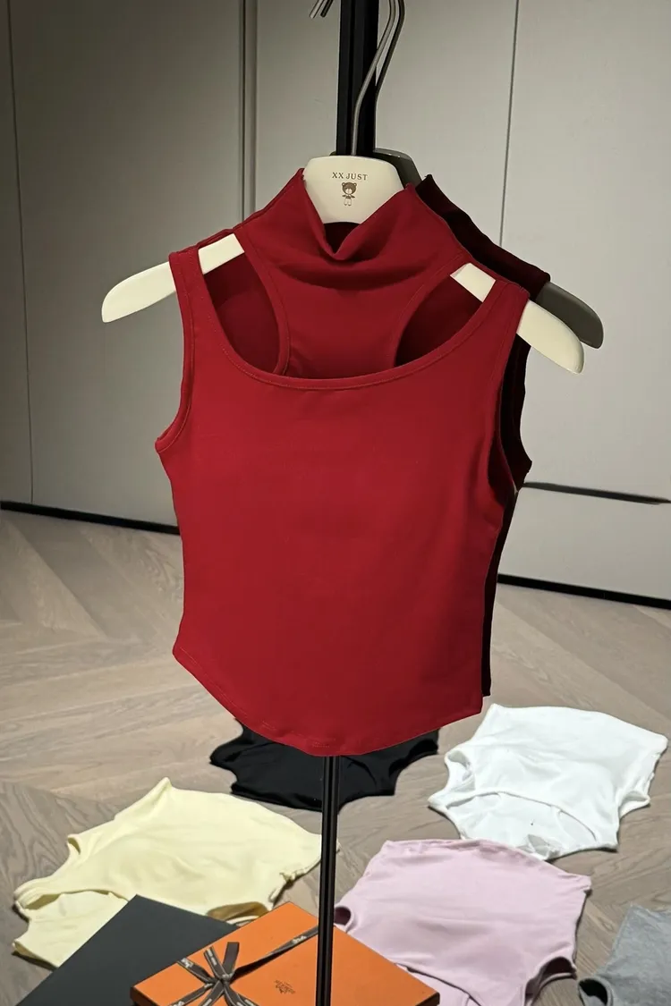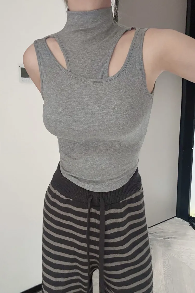 高領假兩件胸墊造型背心