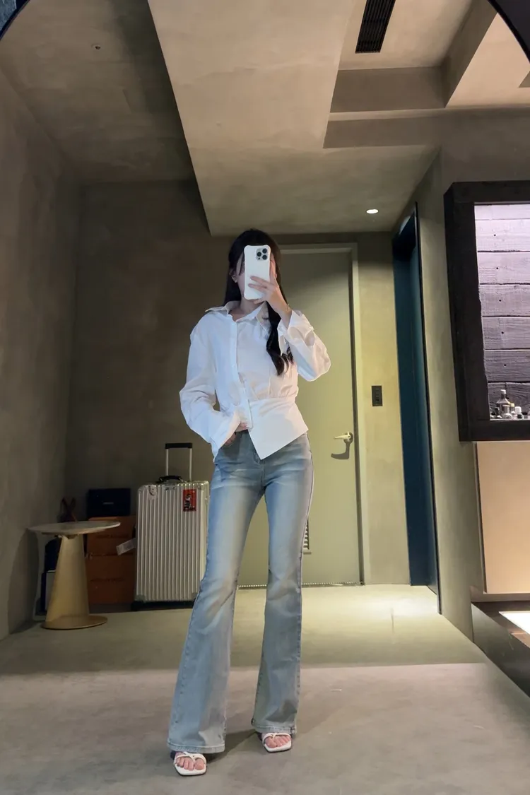 淺藍刷色顯瘦喇叭褲
