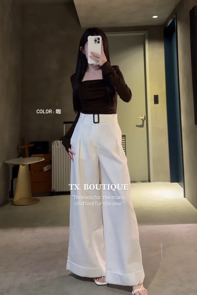 必買回歸!落地反摺百搭寬褲(含皮帶)