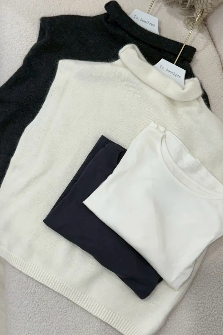 刷毛半高領馬甲背心兩件套