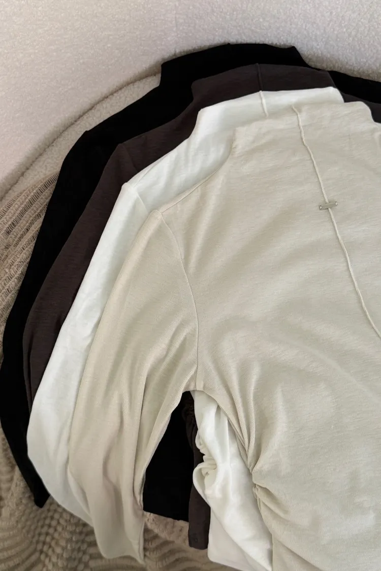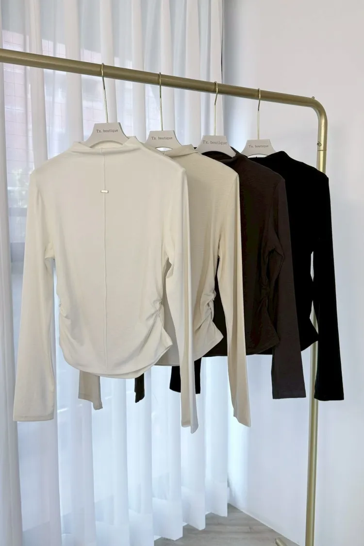親膚抓皺鐵牌半高領打底
