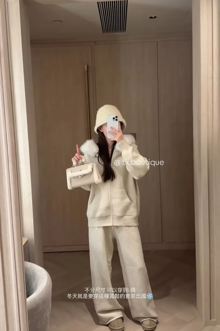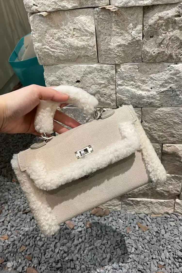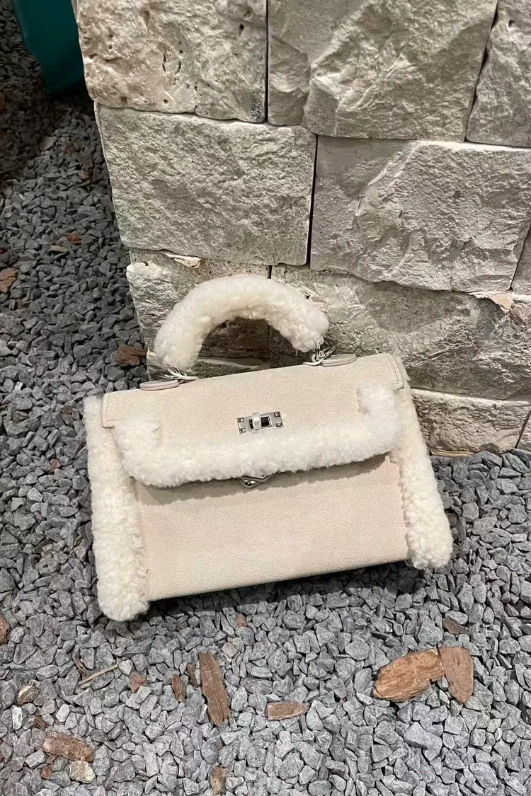 羊羔毛鎖扣手提包